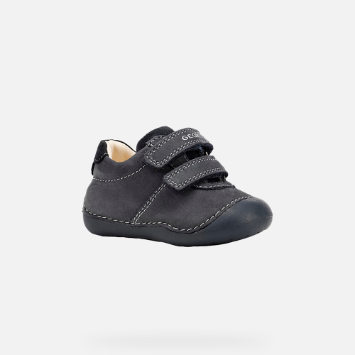 Zapato de niño, protector, confortable y transpirante, ideal para gatear.Realizado en nobuk azul marino, un color clásico y fácil de combinar, Tutim es un zapato diseñado para ofrecer el máximo nivel de comodidad y bienestar. La atención meticulosa a los detalles protectores lo hace ideal para las primeras exploraciones de los niños.