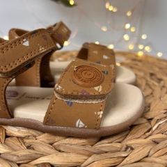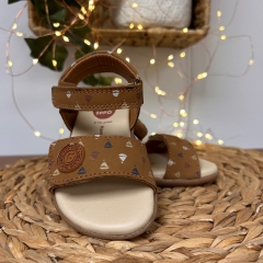 Sandalias de piel con estampado. Diseñadas siguiendo las tendencias minimalistas para garantizar la pisada natural. Cuentan con planta acolchada de piel y cierres ajustables en el empeine y el tobillo.