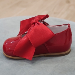 Clásica mercedita realizada en charol, cierre de hebilla y lazo de quita/pon.