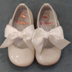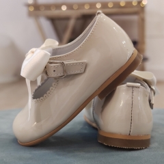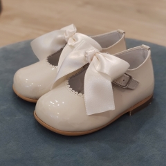 Clásica mercedita realizada en charol, cierre de hebilla y lazo de quita/pon.