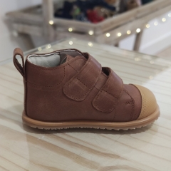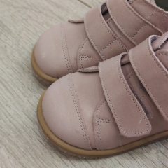Botín de piel, interior y exterior, con cierre de velcros, suela plana ( sin drop ), muy fina y totalmente flexible.