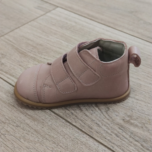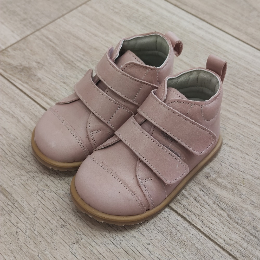 Botín de piel, interior y exterior, con cierre de velcros, suela plana ( sin drop ), muy fina y totalmente flexible.