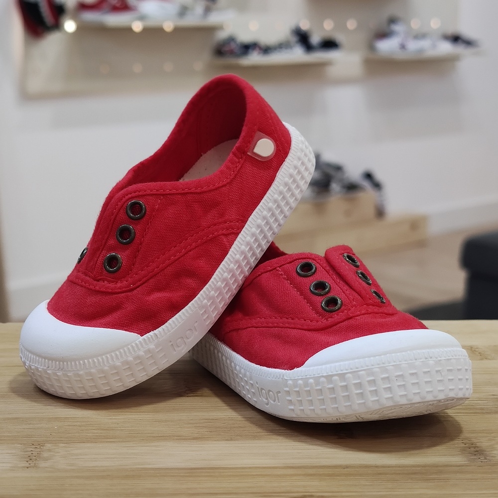 Zapatillas de lona realizadas 100% algodón, sin cordones y con goma delantera en empeine.