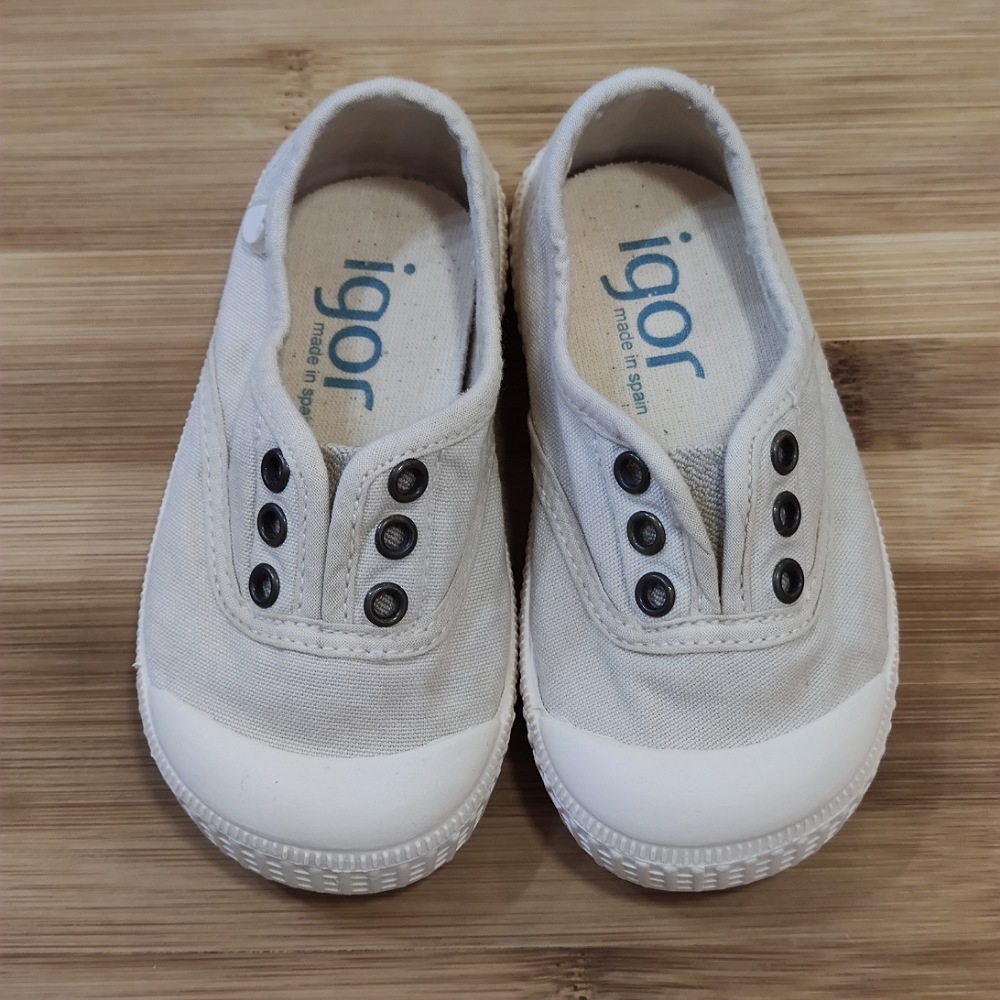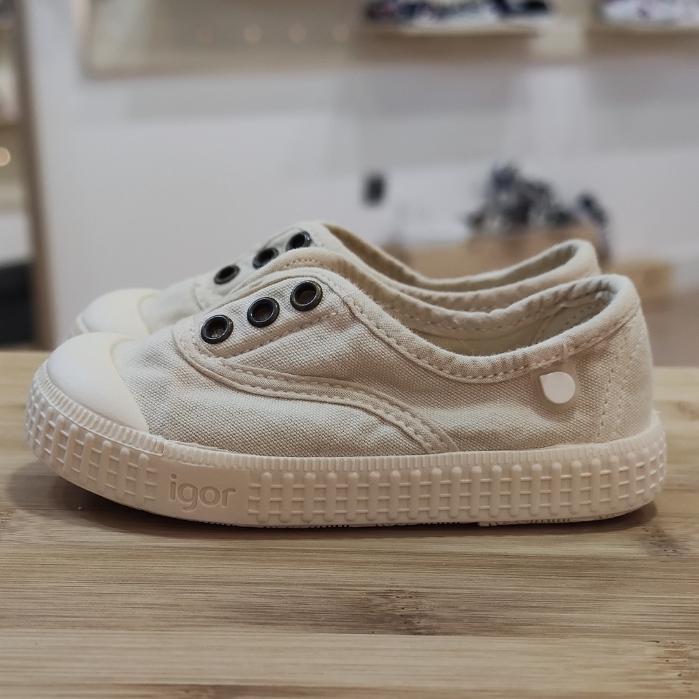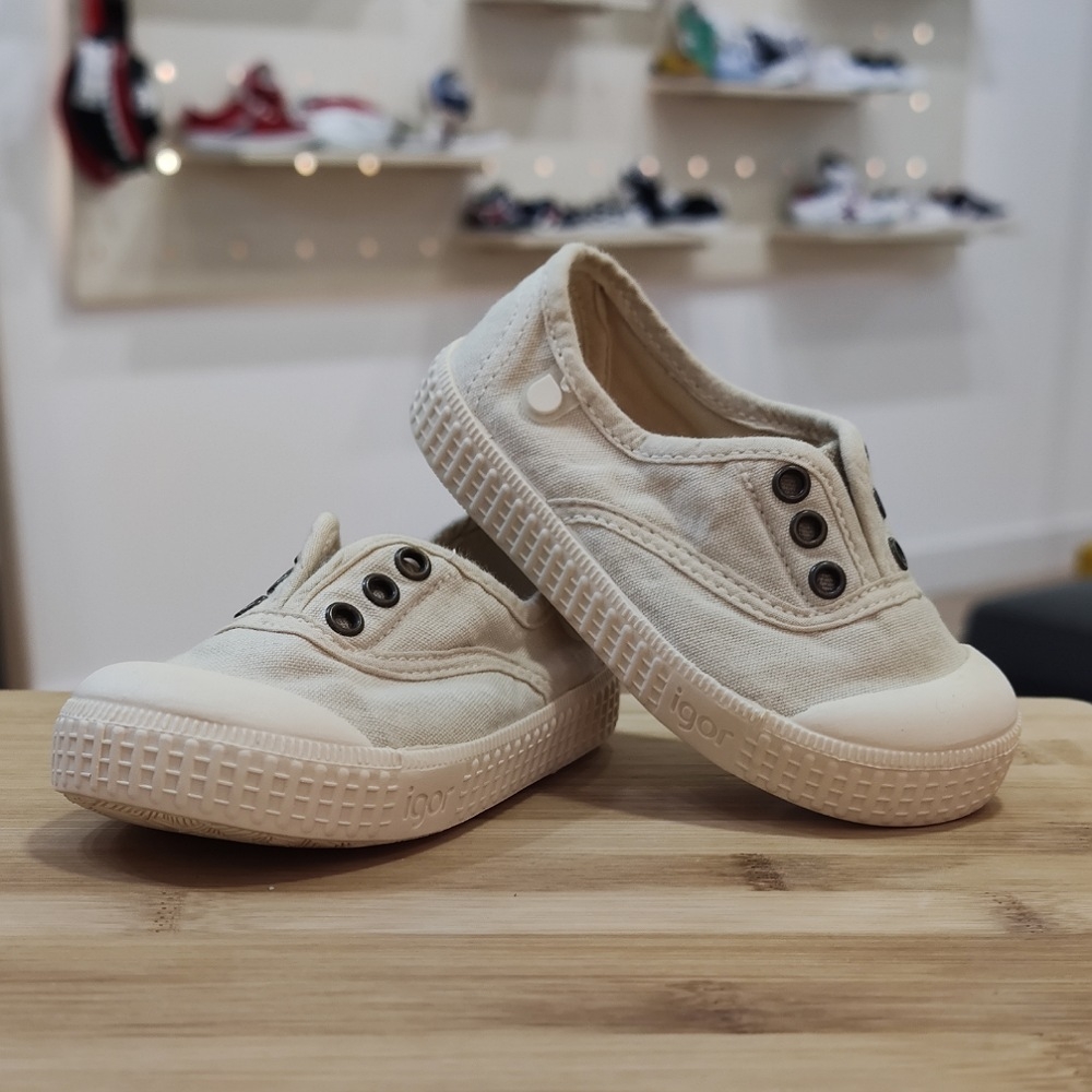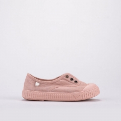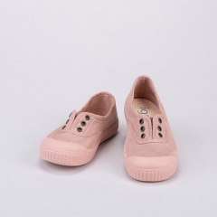 Zapatillas de lona realizadas 100% algodón, sin cordones y con goma delantera en empeine.