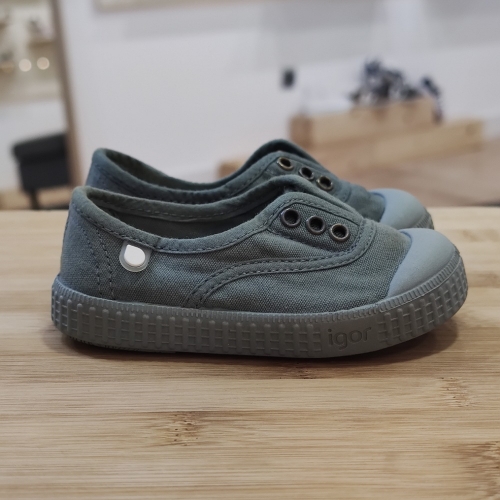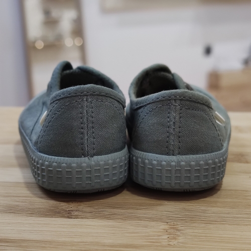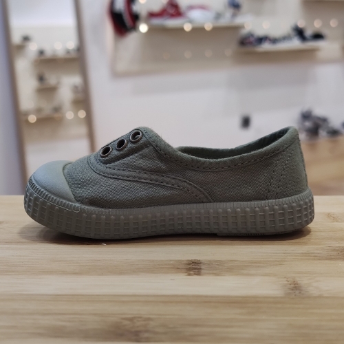 Zapatillas de lona realizadas 100% algodón, sin cordones y con goma delantera en empeine.