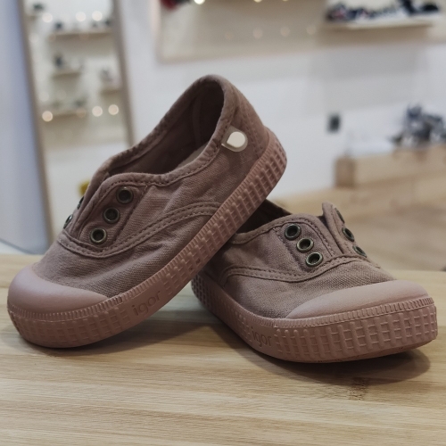 Zapatillas de lona realizadas 100% algodón, sin cordones y con goma delantera en empeine.