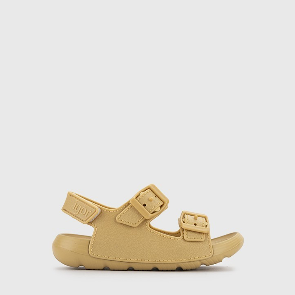 Sandalia de estilo bio con cierre de hebilla y sujeción trasera adherente.
