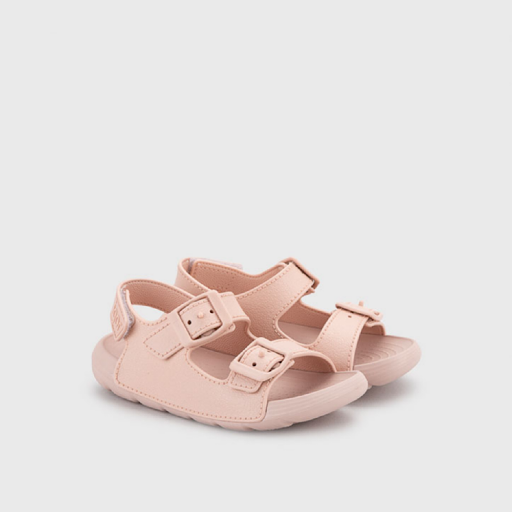 Sandalia de estilo bio con cierre de hebilla y sujeción trasera adherente.