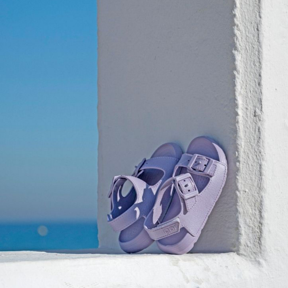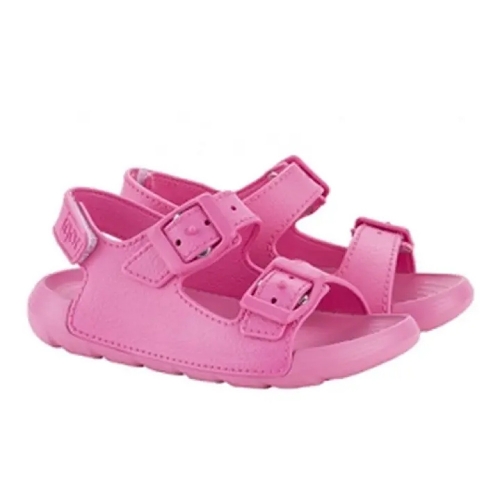 Sandalia de estilo bio con cierre de hebilla y sujeción trasera adherente.
