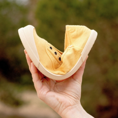 Zapatilla de lona 100% algodón, de concepto barefoot medium, cero drop, flexible, blandita y con plantilla extraíble. El tinte de nuestras lonas es irregular por su efecto lavado. Lavar en agua fría no sin antes extraer la plantilla.