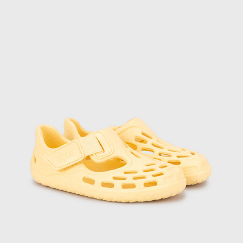 Sandalia monocolor de E.V.A. súper ligera diseñada en concepto barefoot medium, cero drop, flexible, blandita, y con cierre adherente.