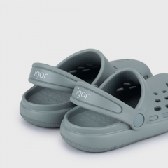 Zueco monocolor con acabado en mate de estilo sport, fabricado en 100% EVA, súper ligero y con tira en el talón para mayor sujeción