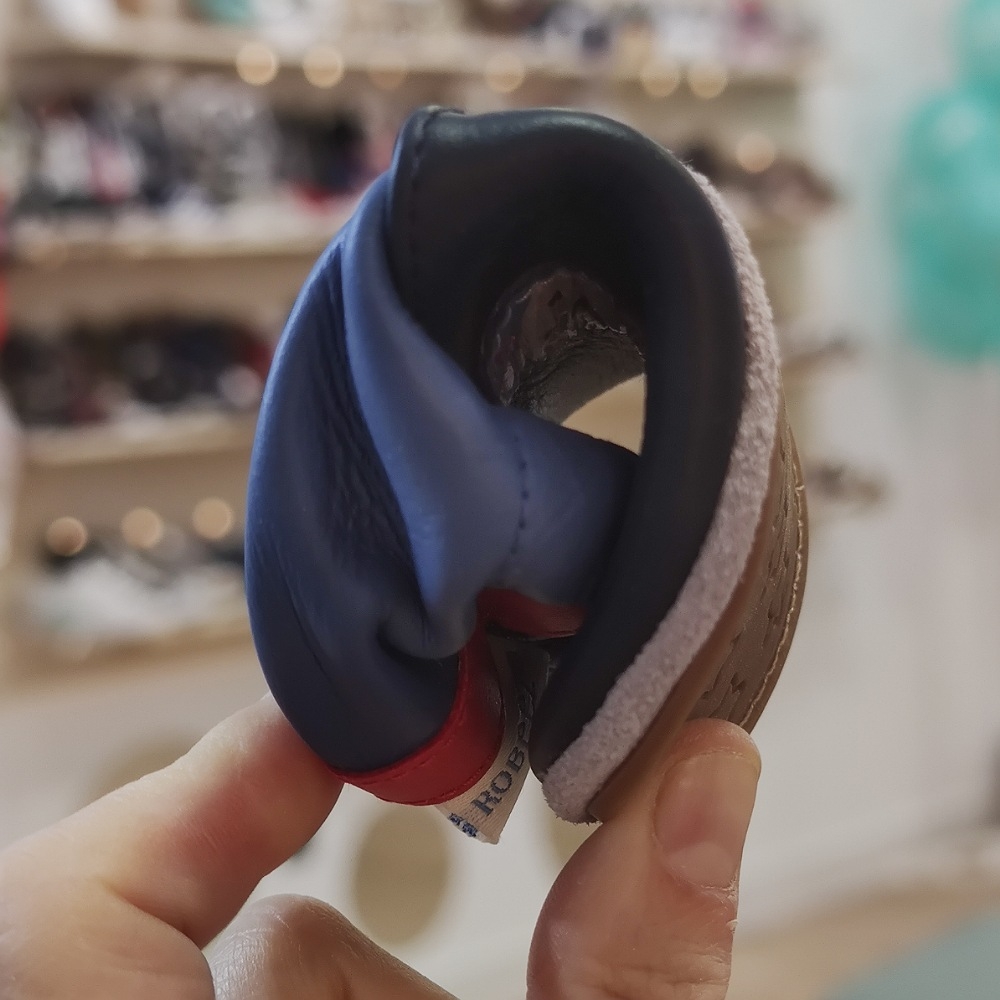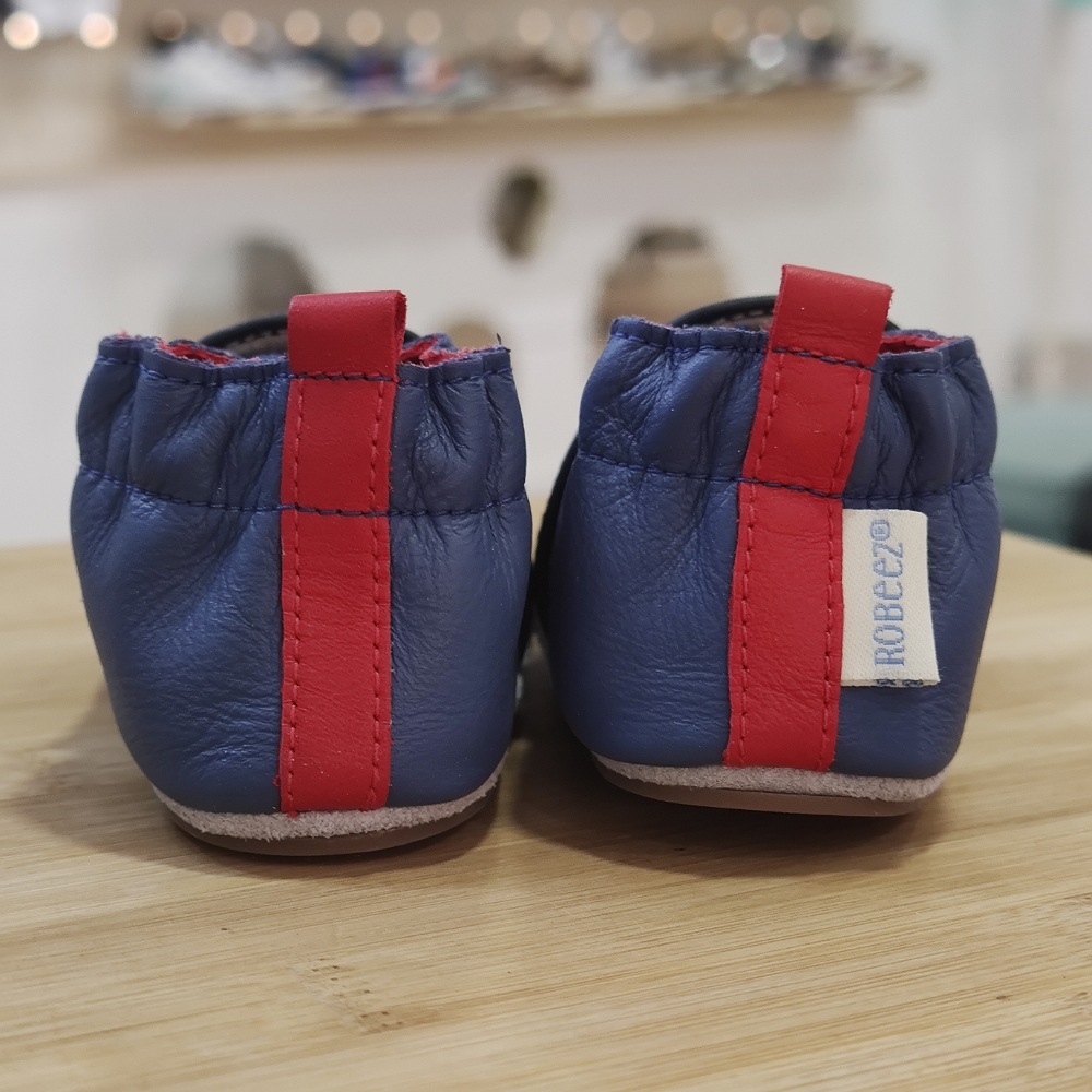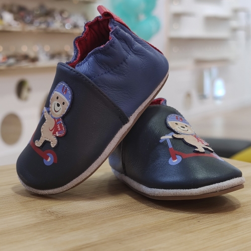 Zapatilla realizada en piel azul marino, con estampado delantero. Suela flexible de termopropileno, interior en piel y textil.