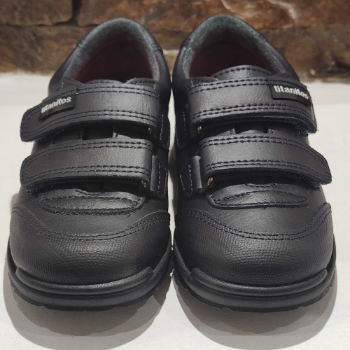 Zapato escolar realizado en piel lavable hidrofugada, con cierre de dos velcros para un mayor ajuste y  un calce más  cómodo  y rápido. Puntera y talón reforzados para una mayor resistencia.