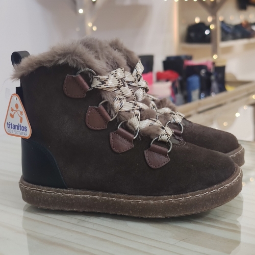 Botín de piel serraje con interior forrado en pelo.