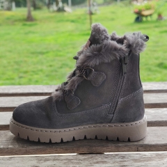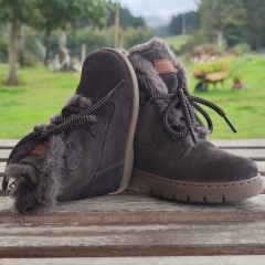 Botín realizado su exterior en piel serraje, con forro interior en pelo super calentita, cierre con cordones y cremallera lateral interior para un calce más fácil y rápido.