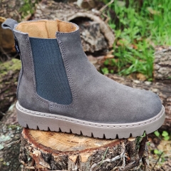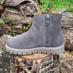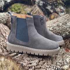 Botín estilo Chelsea realizado en piel serraje, con cremallera lateral en la parte interior y con goma en la exterior.