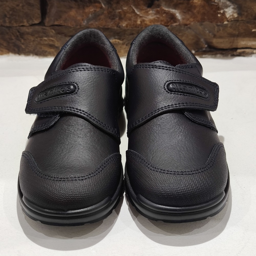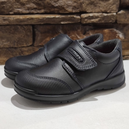 Zapato escolar realizado en piel lavable hidrofugada, con cierre de velcro para un mayor ajuste y  un calce más  cómodo  y rápido. Puntera y talón reforzados para una mayor resistencia.