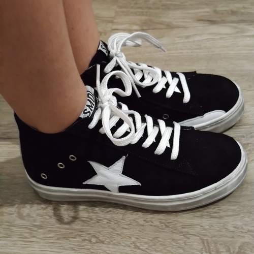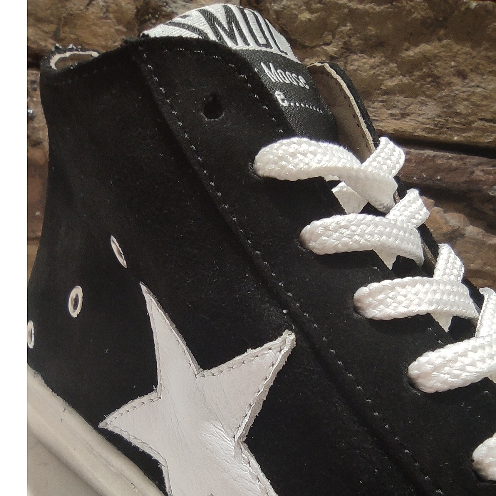 Deportiva abotinada realizada en serraje, con estrella de piel en contraste blanco, cremallera lateral interior para un calce mas rápido  y cómodo.